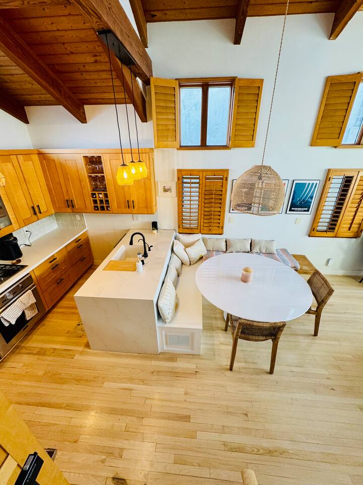 With bedrooms on each floor, the place lends offers privacy for everyone but an open and spacious kitchen/great room/deck on the main floor