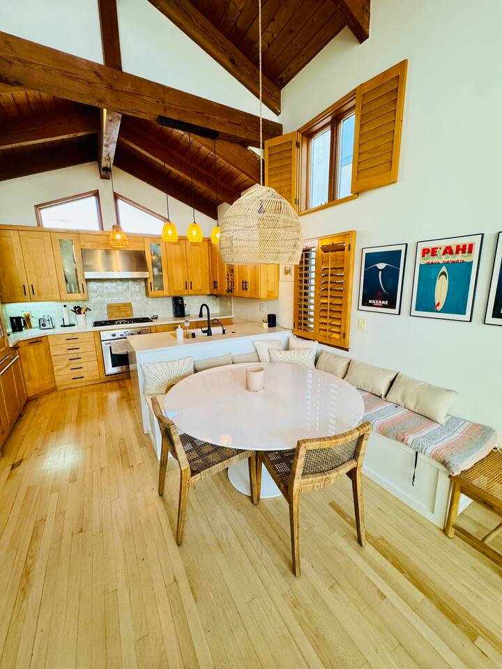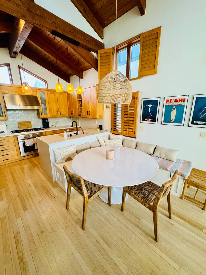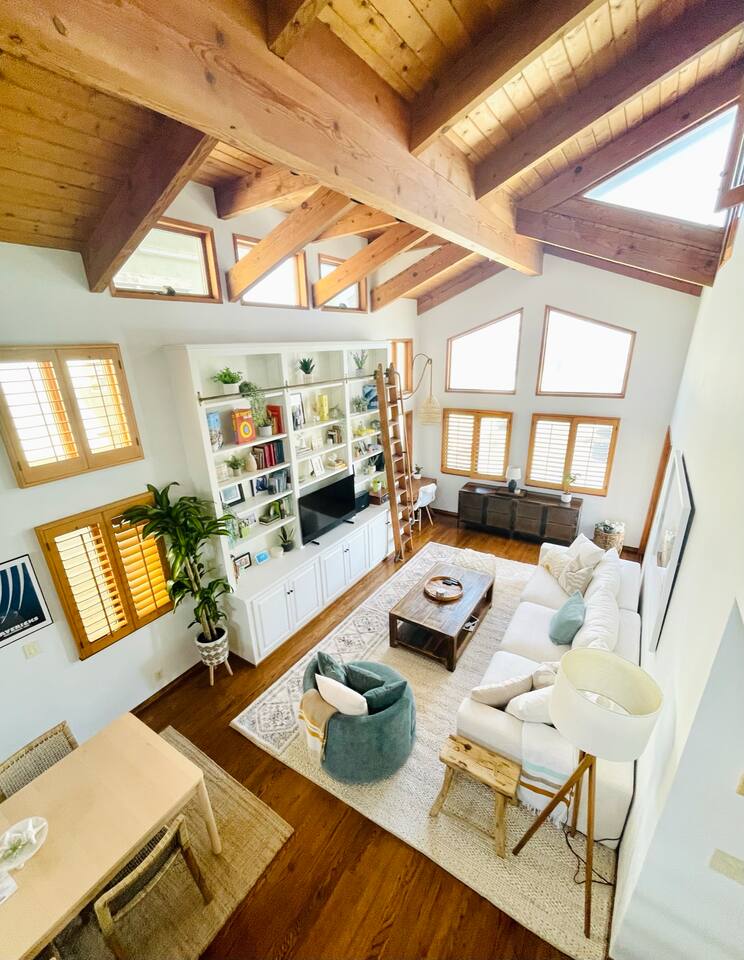 Light and Bright, vaulted wood ceilings surrounded with ocean views. This 3 bedroom 3 bathroom tri-level home offers view two decks to enjoy the sun, the community and the ocean views. Walking distance to the beach, the parks, local restaurants and shops. Recently updated with new furniture and amenities like an outdoor fire pit and bbq for making the most of the summer days and nights. Home features a spacious floor plan. We renovated the garage into extended living space (couch, large tv,…)